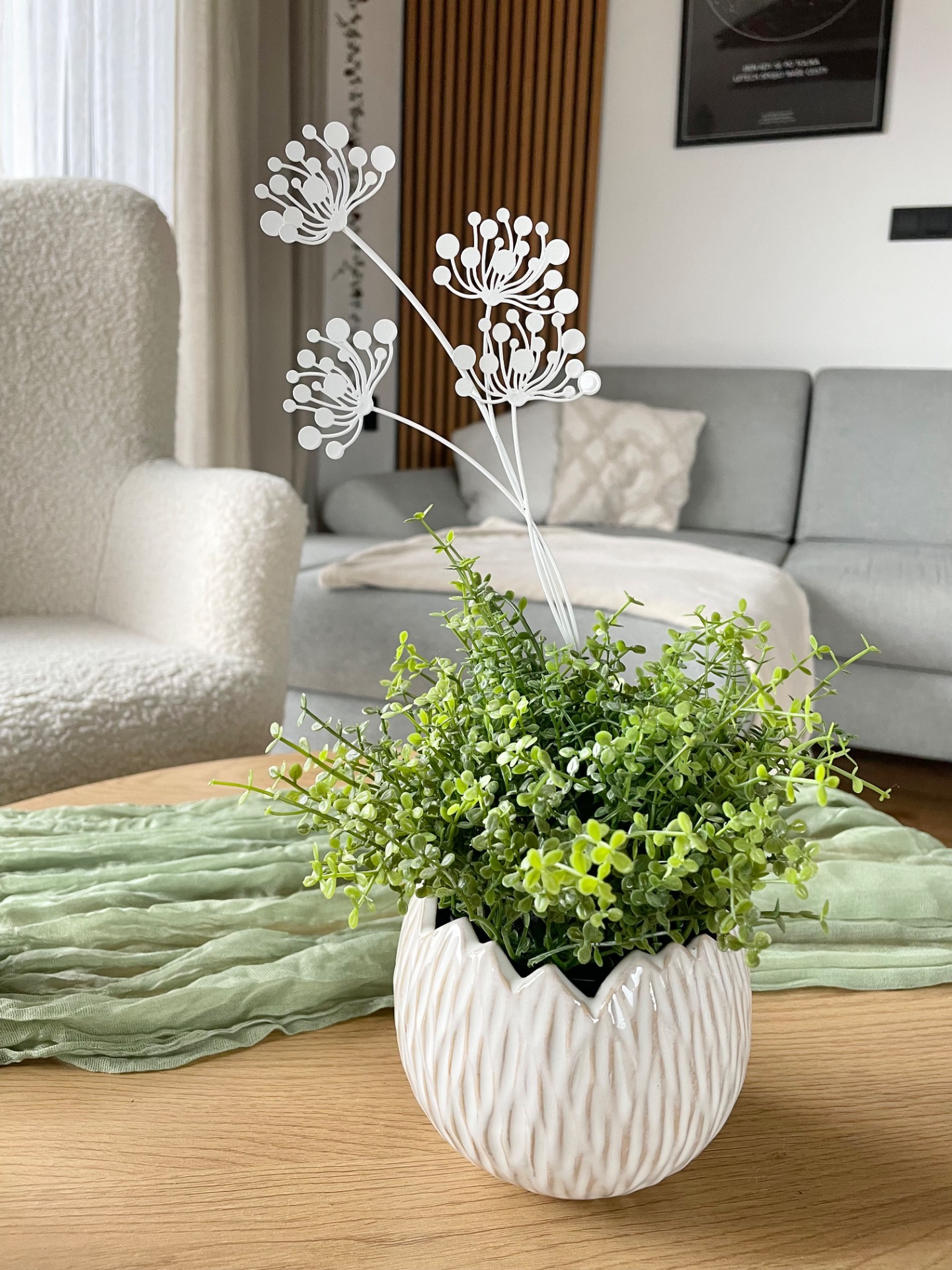 Dekorační zápich vhodný na jarní, letní i celoroční použití.Rozměry: 14 x 0,2 x 28 cm.Materiál: kov.Barva: bílá.