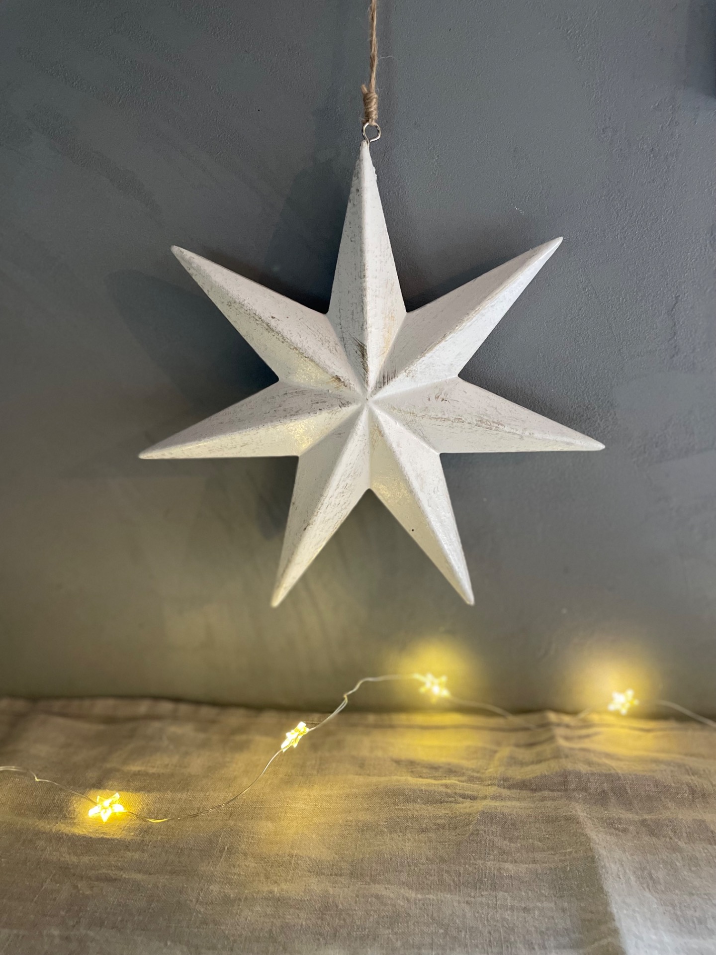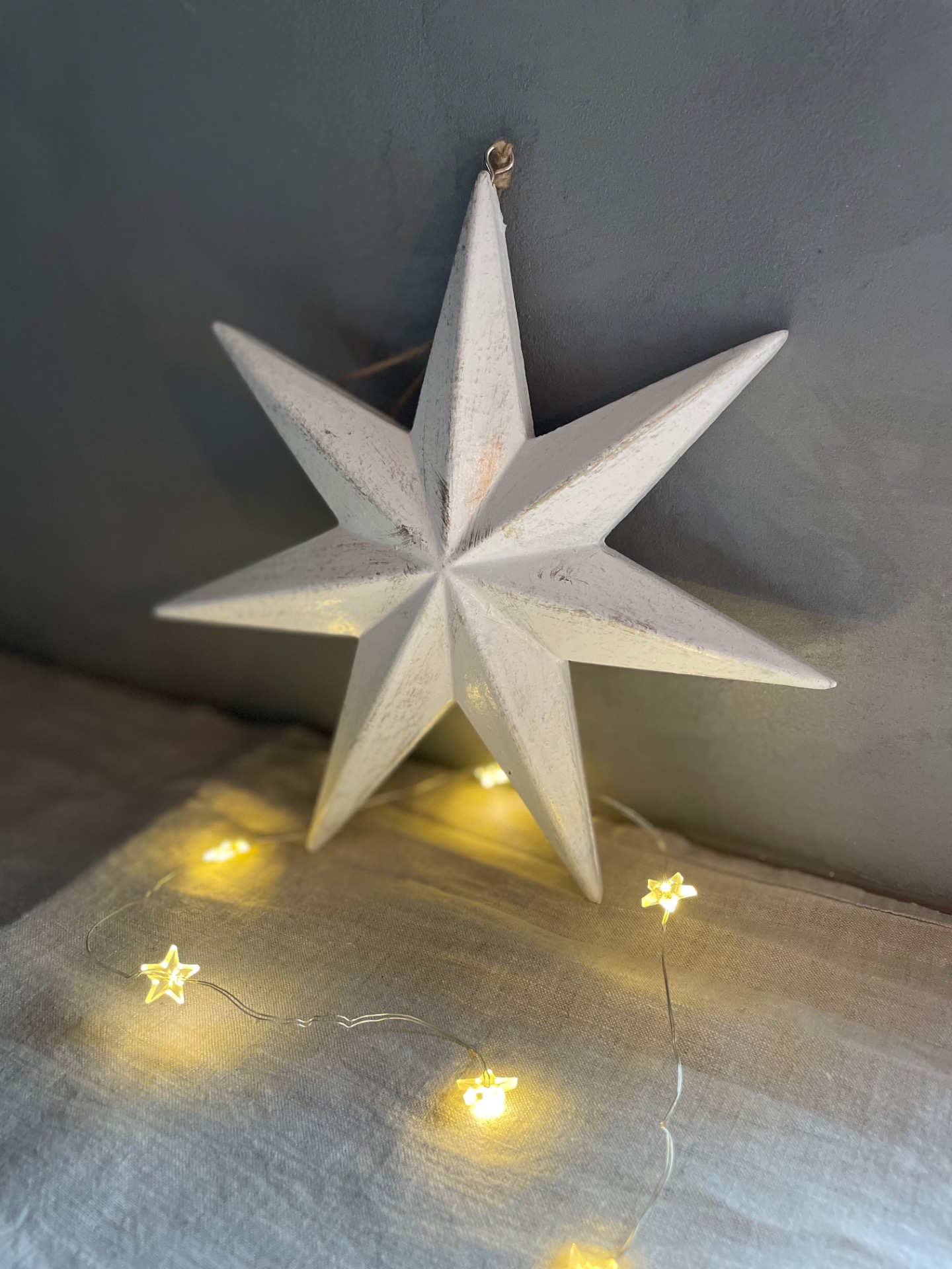 Závěsná dřevěná hvězda v barevné provedení bílá patina.