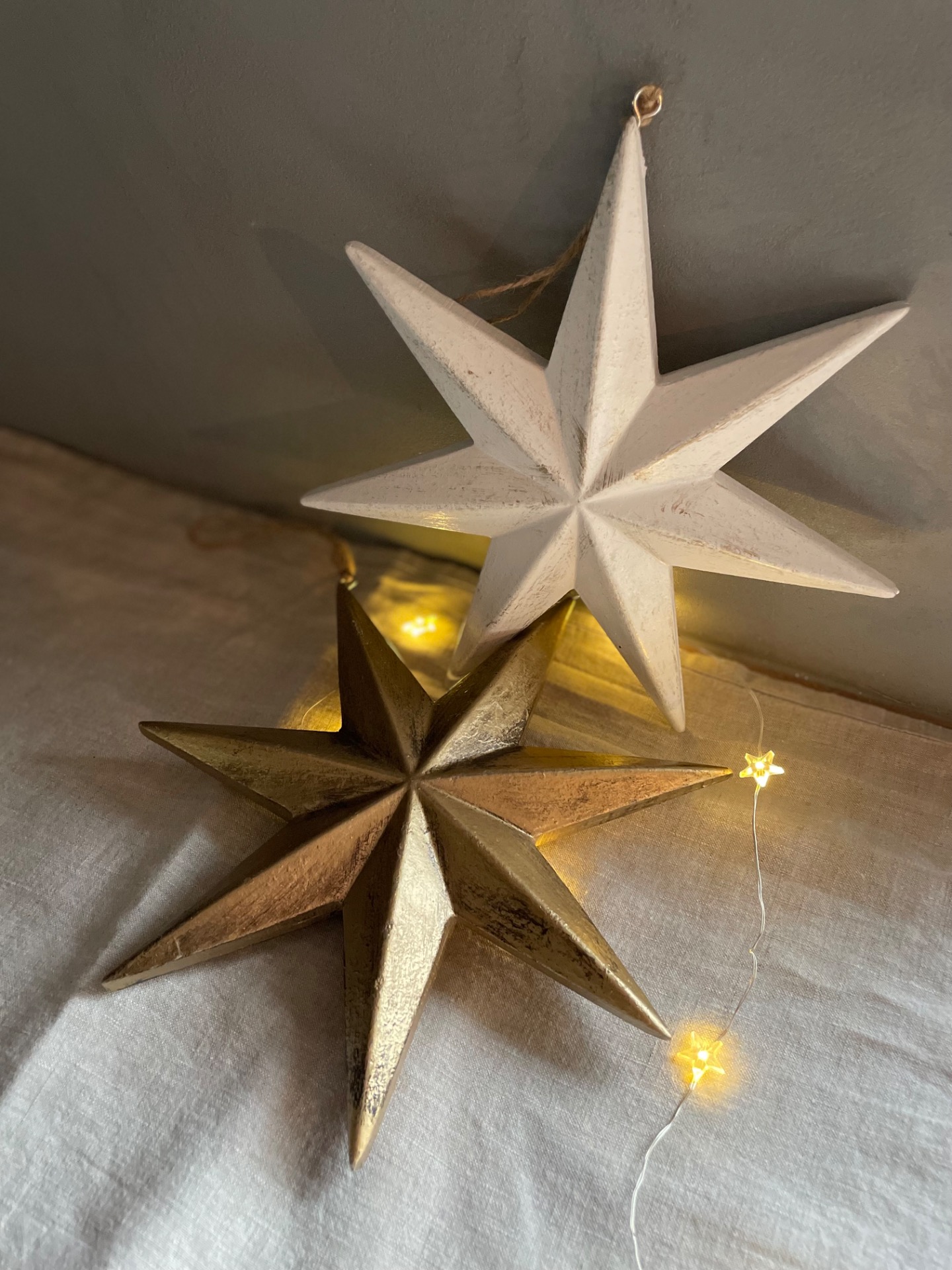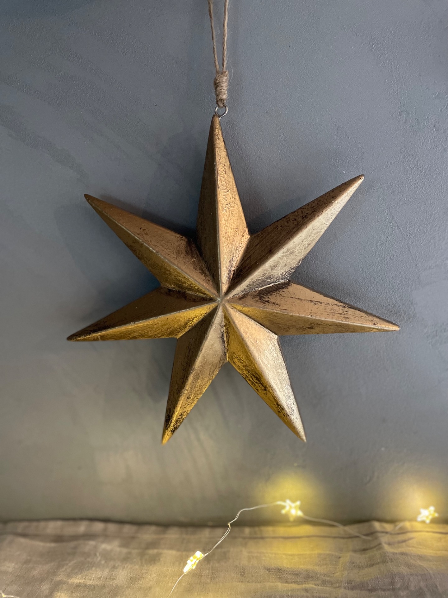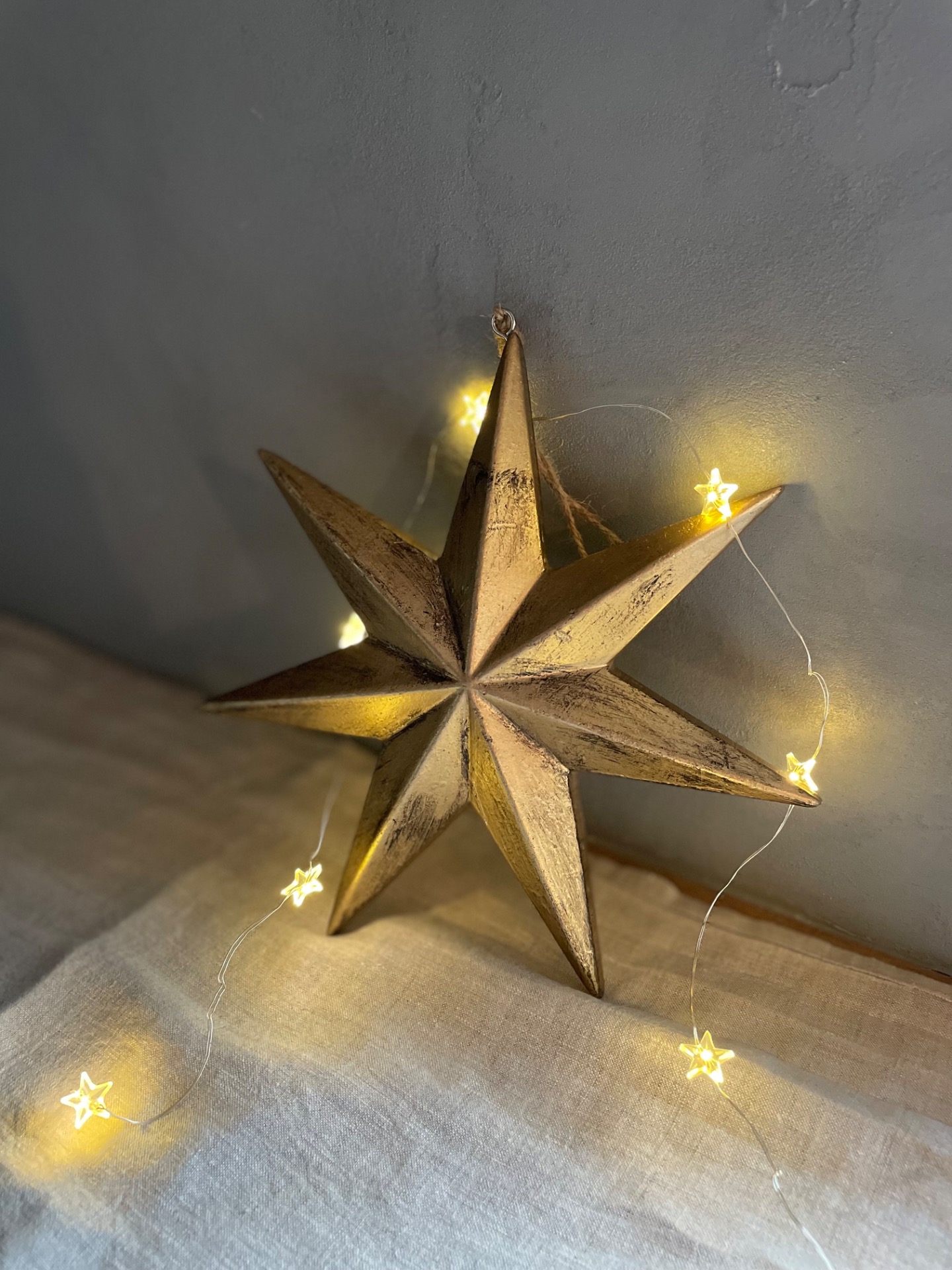 Závěsná dřevěná hvězda v barevné provedení zlatápatina.