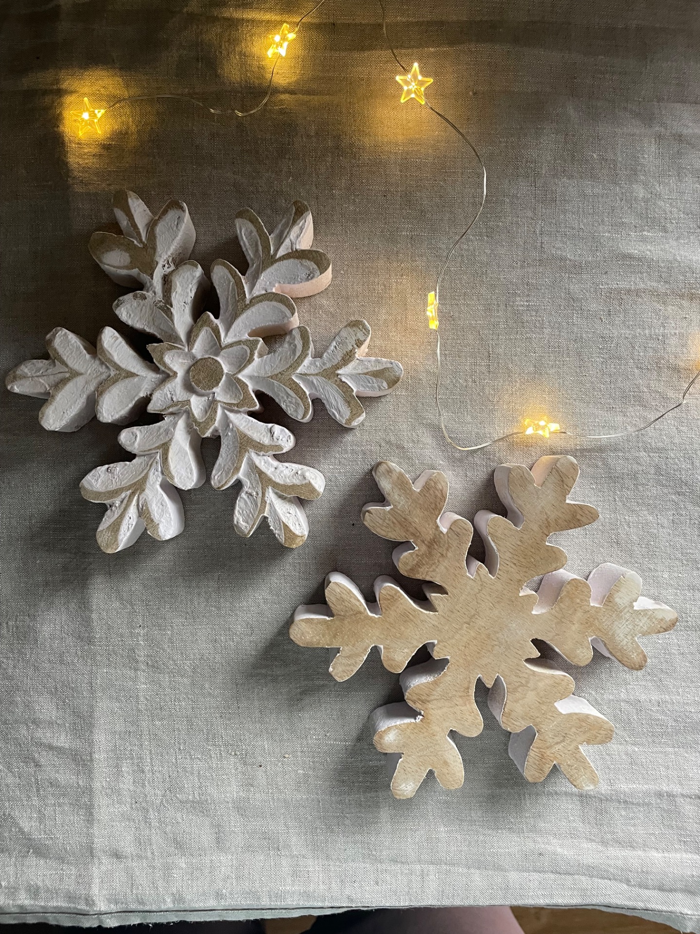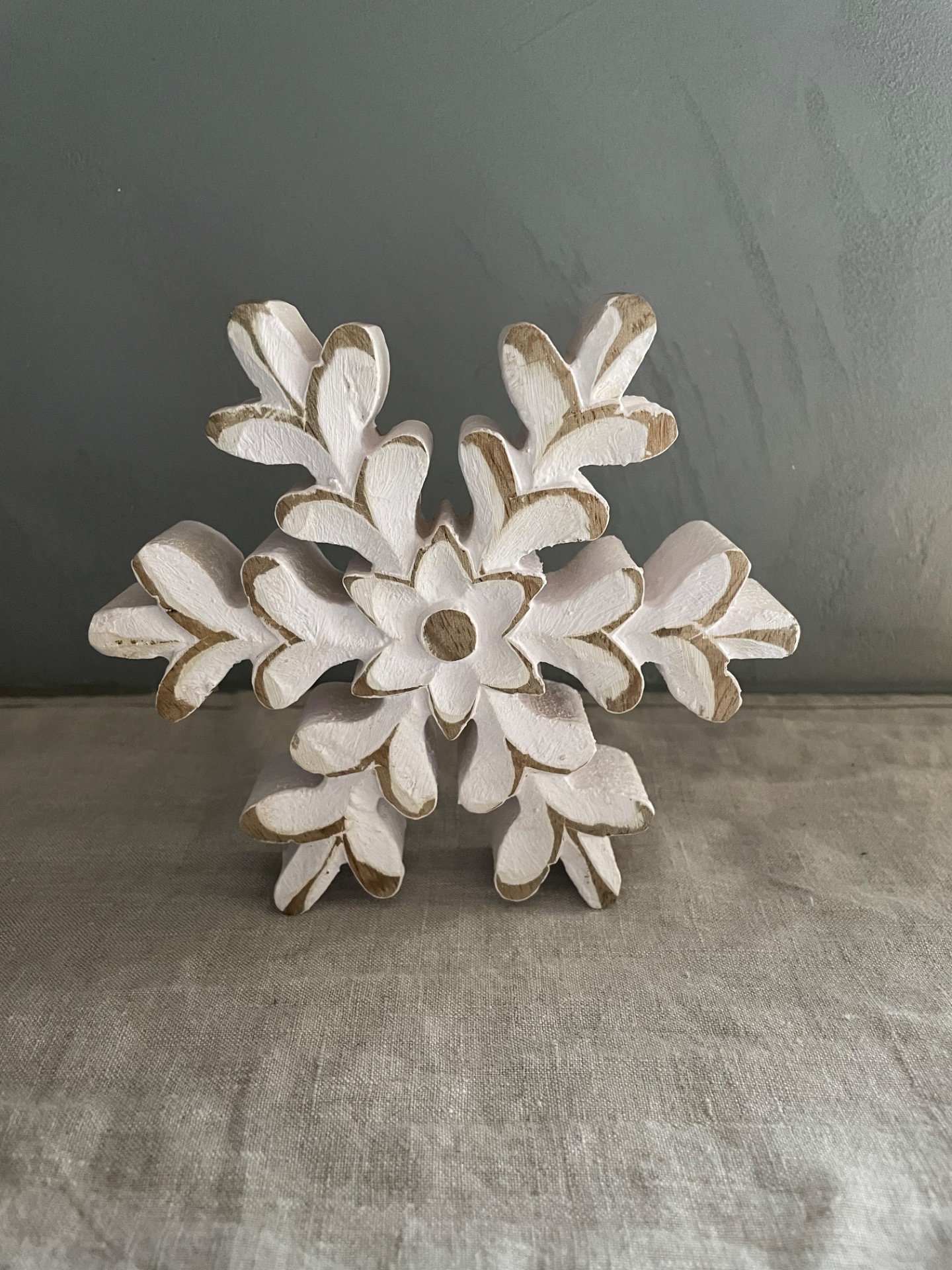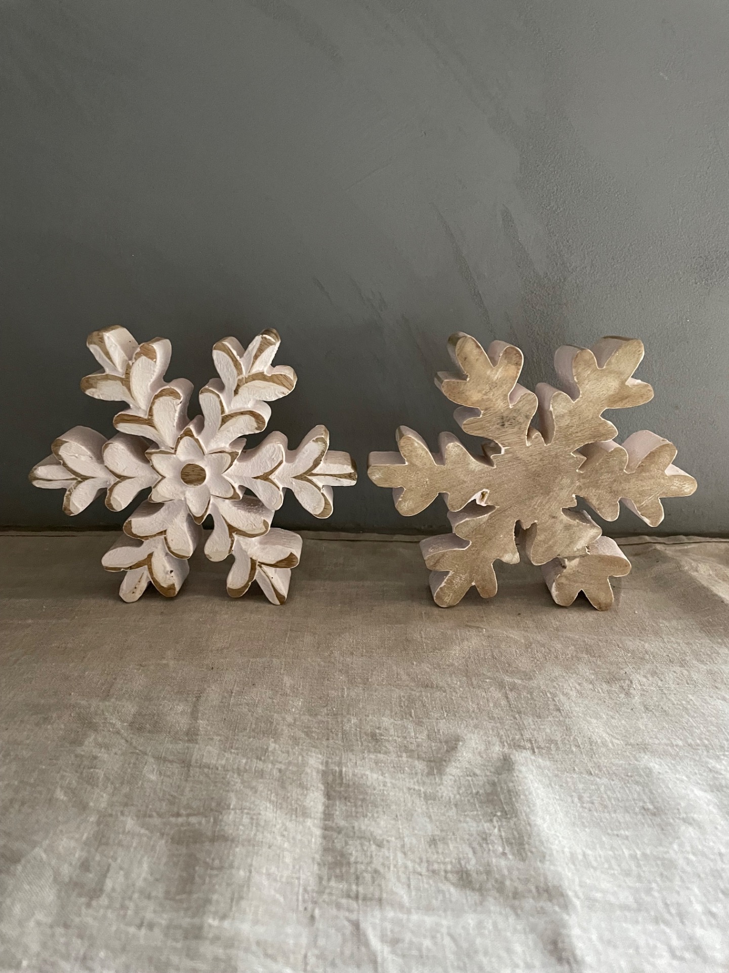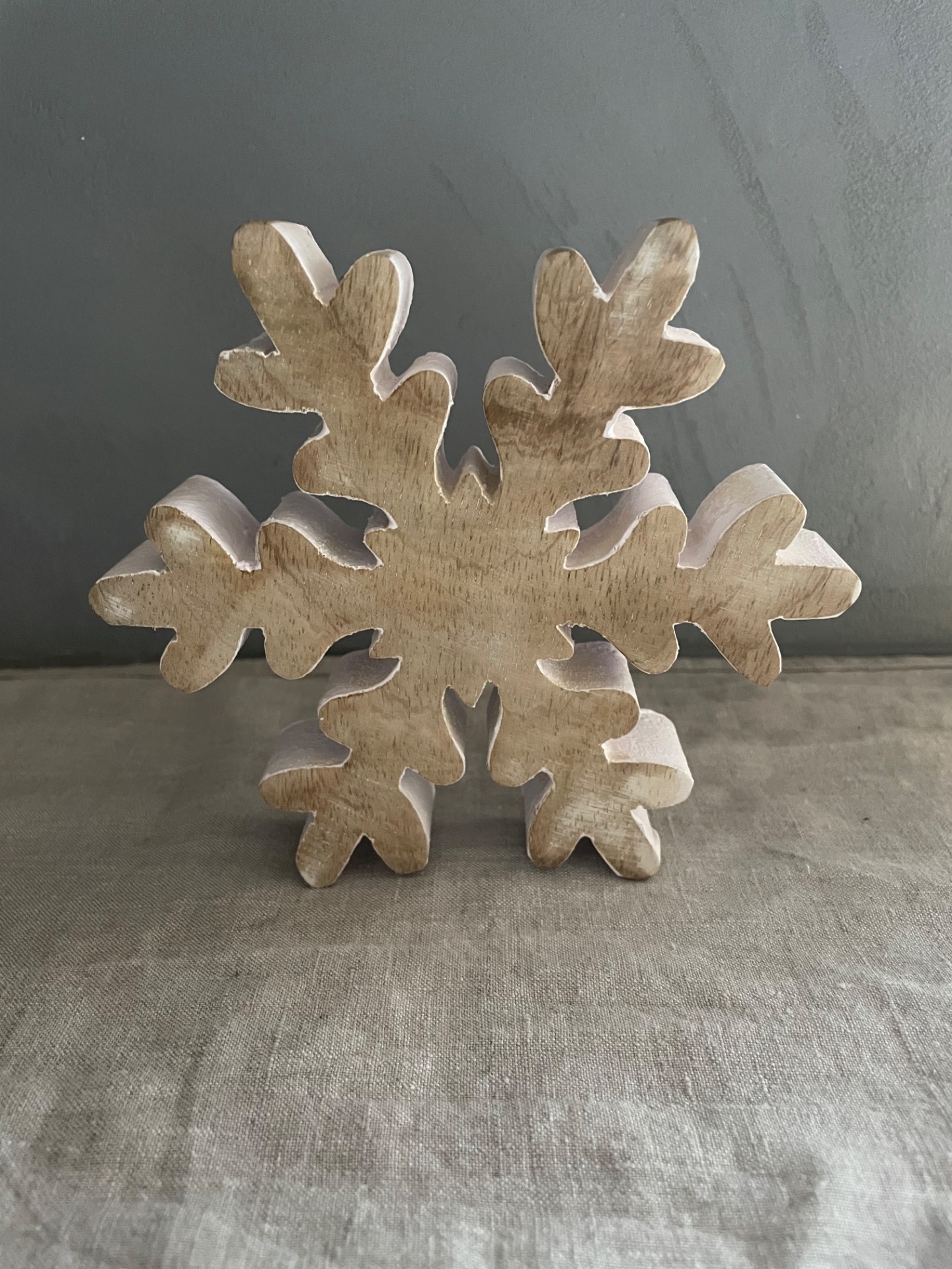 Dřevěná vločka k dekoraci na postavení. Možné použít z obou stran.
