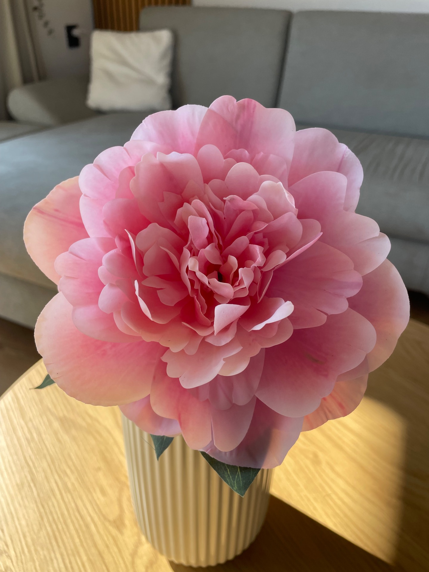 Luxusní umělá pivoňka o délce 55 cm zaujme svým plným, bohatě vrstveným květem a precizně tvarovanými okvětními lístky. Díky provedení Real Touch působí nejen vizuálně velmi přirozeně, ale i na dotek připomíná živou květinu.