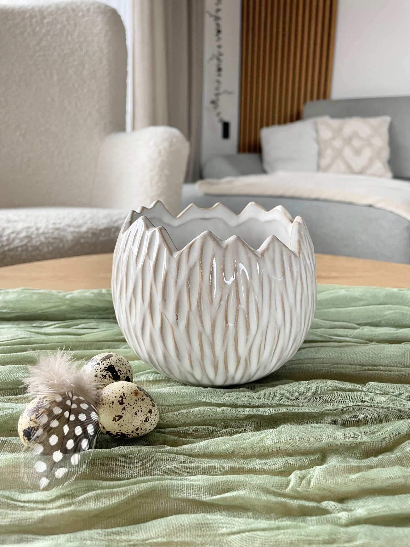 Menší květinový obal pro jemné dekorace v designu s vroubky.