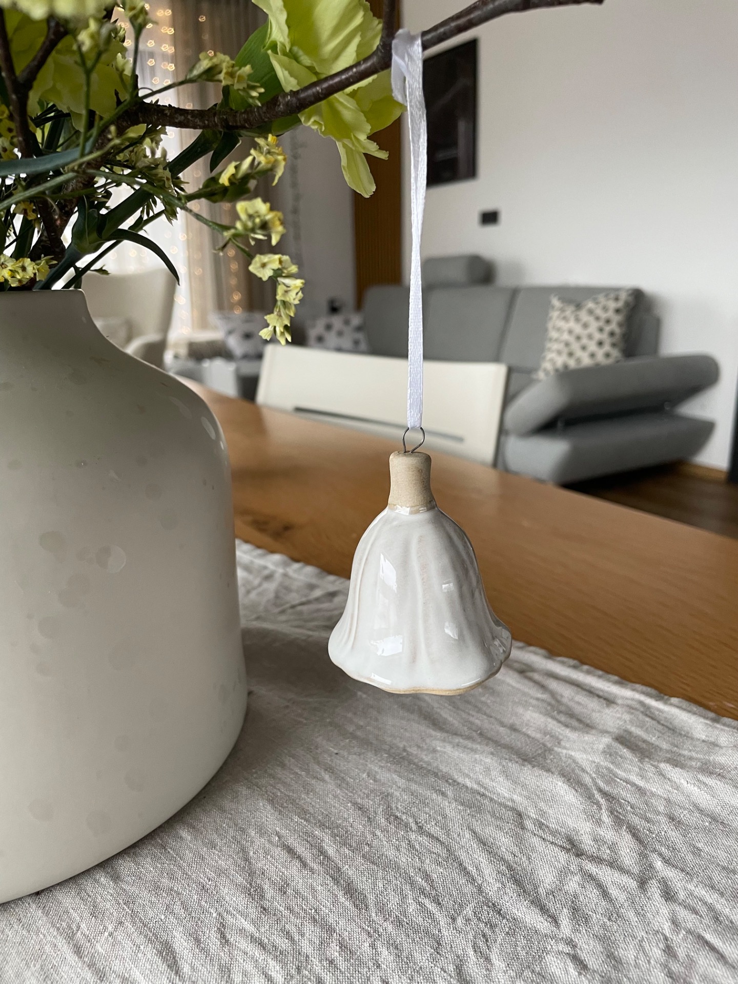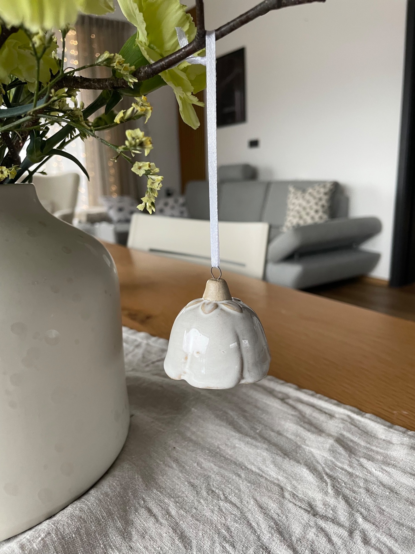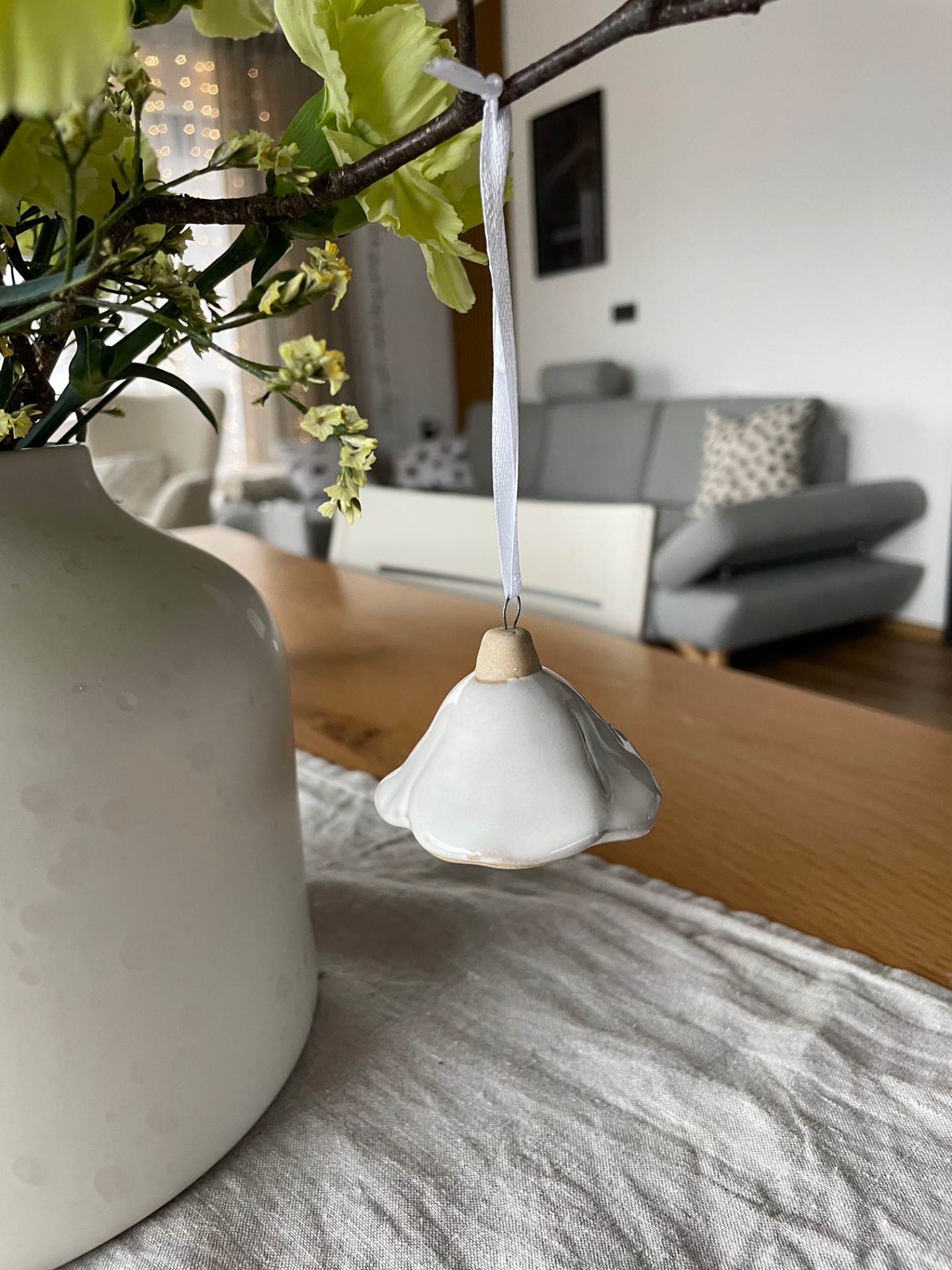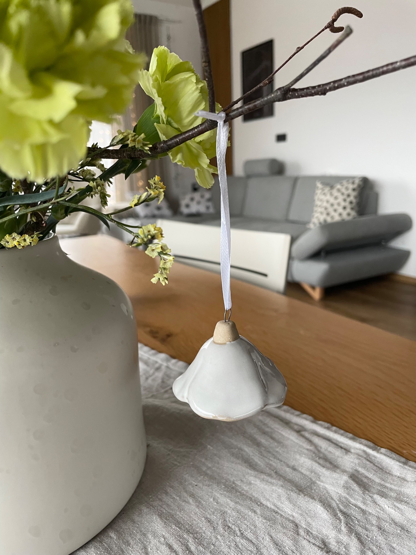 Porcelánové květinky jako něžná minimalistická dekorace. Vhodné k zavěšení na větvičku.