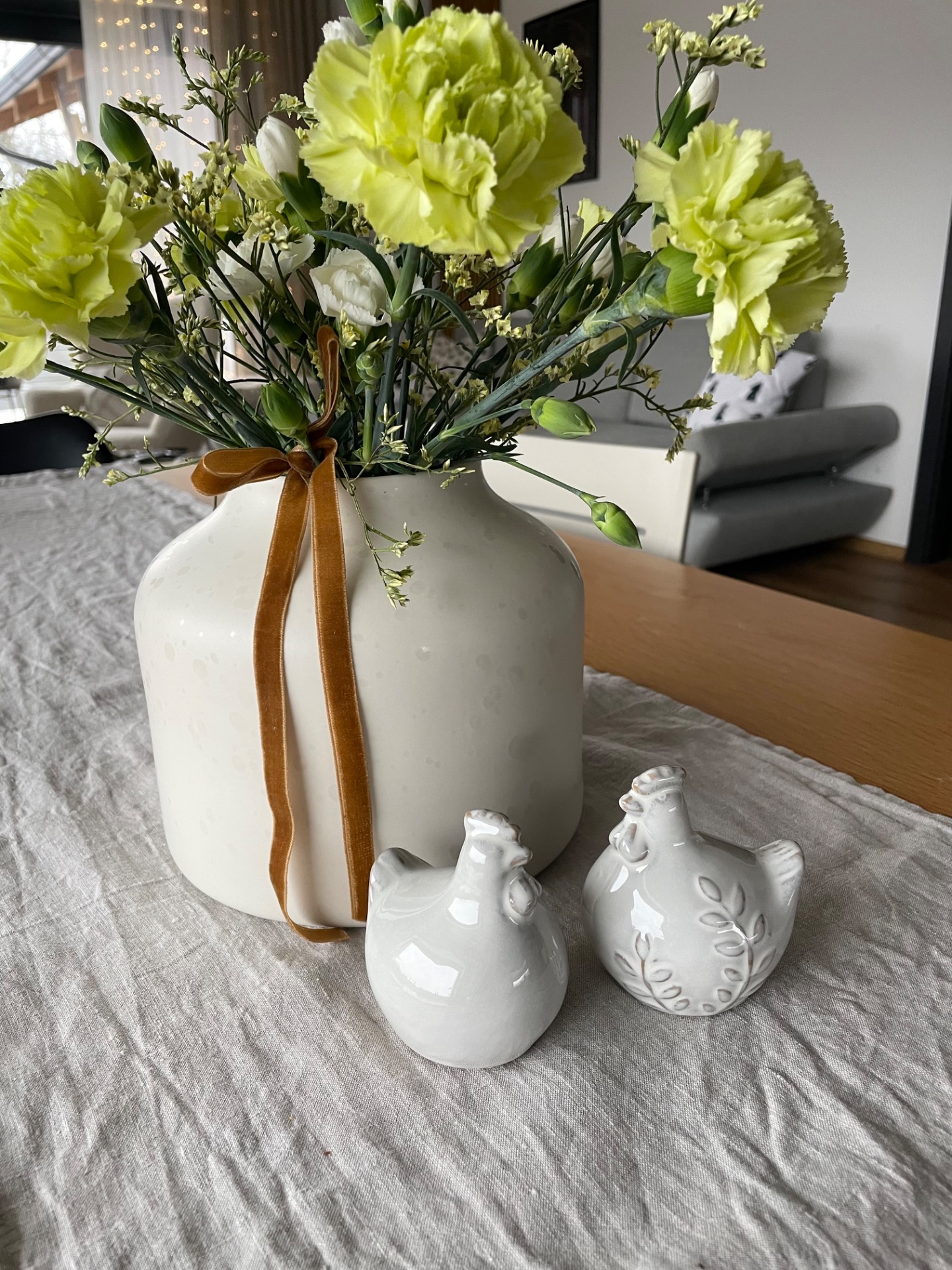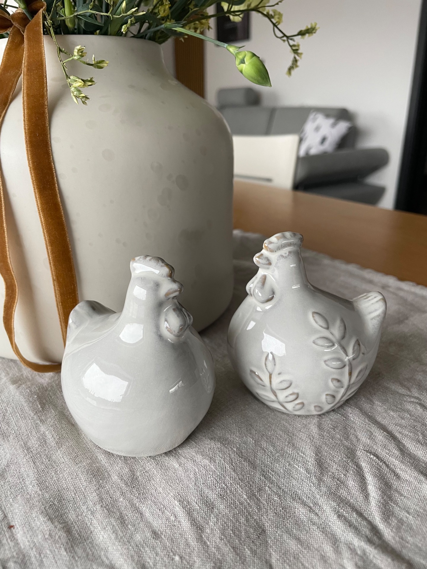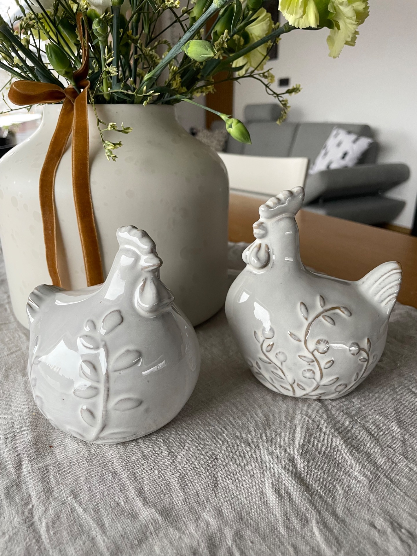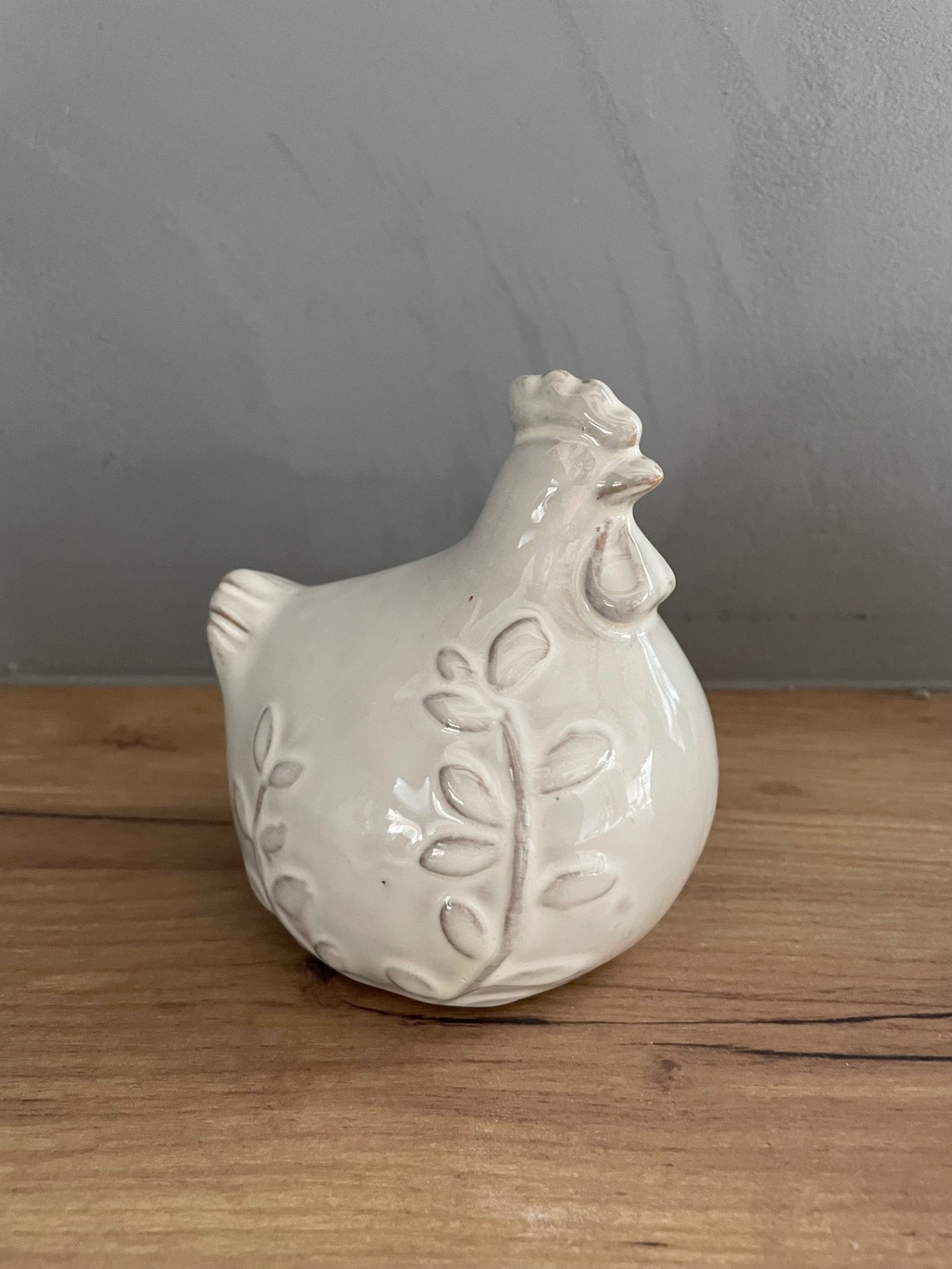 Porcelánová slepička v bílé barvě s kresbou větvičky. Minimalistická jarní a velikonoční dekorace pro milovníky čistoty a jemnosti.