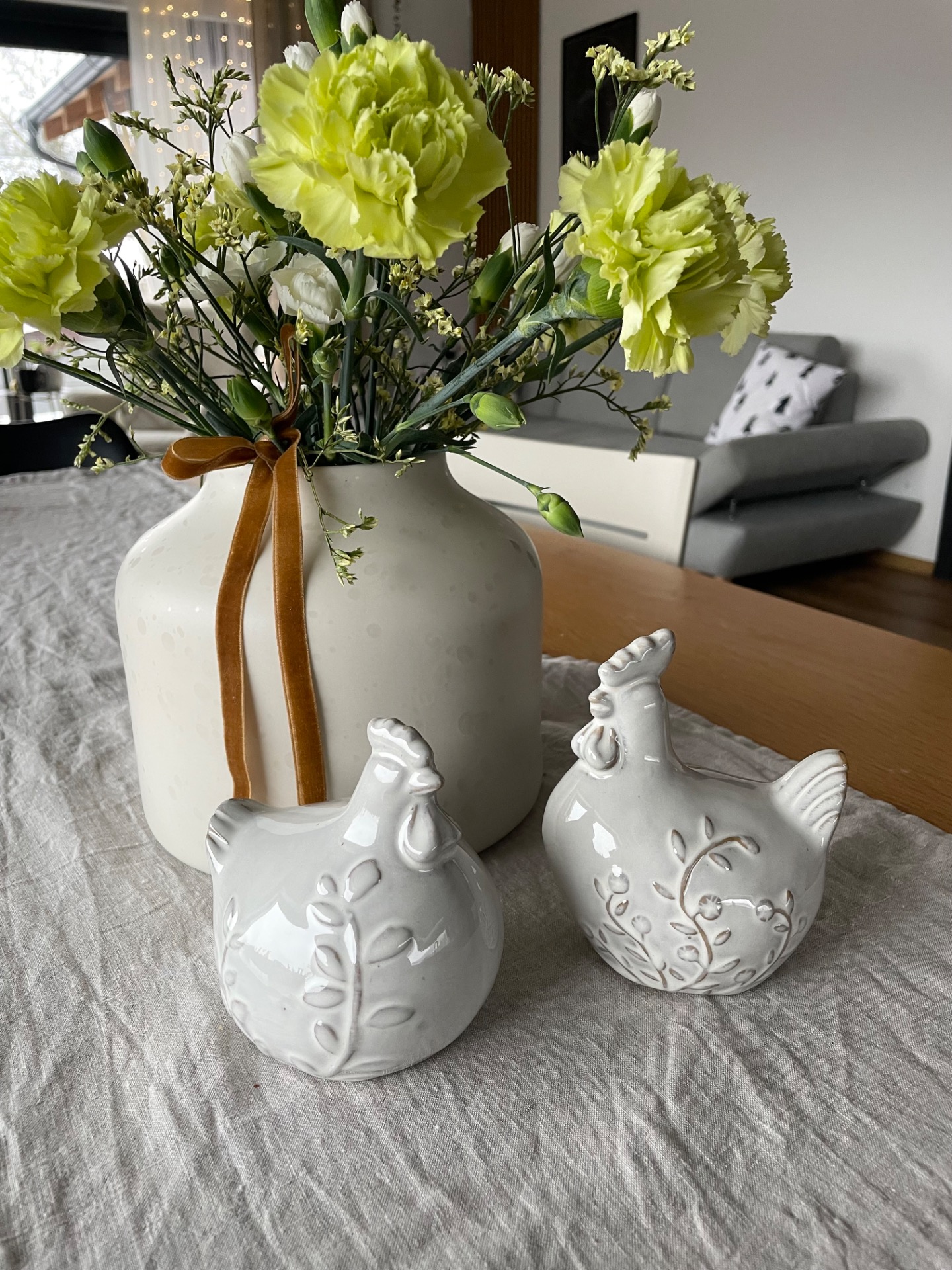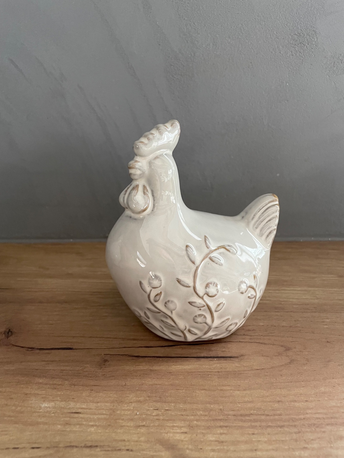 Porcelánový kohoutek v bílé barvě s kresbou větvičky. Minimalistická jarní a velikonoční dekorace pro milovníky čistoty a jemnosti.