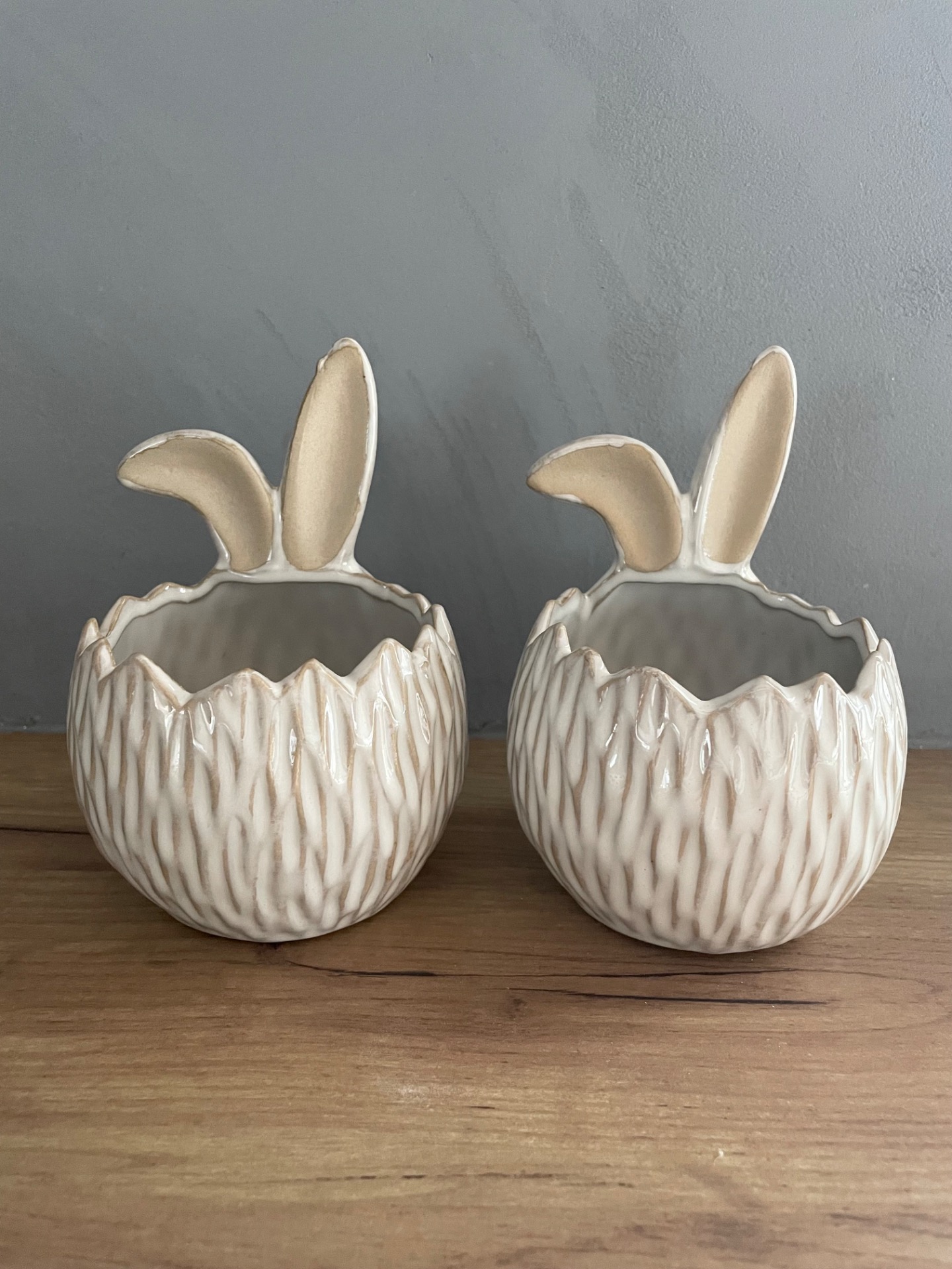 Dekorativní porcelánový obal na květinu v designu zajíčka s oušky.
