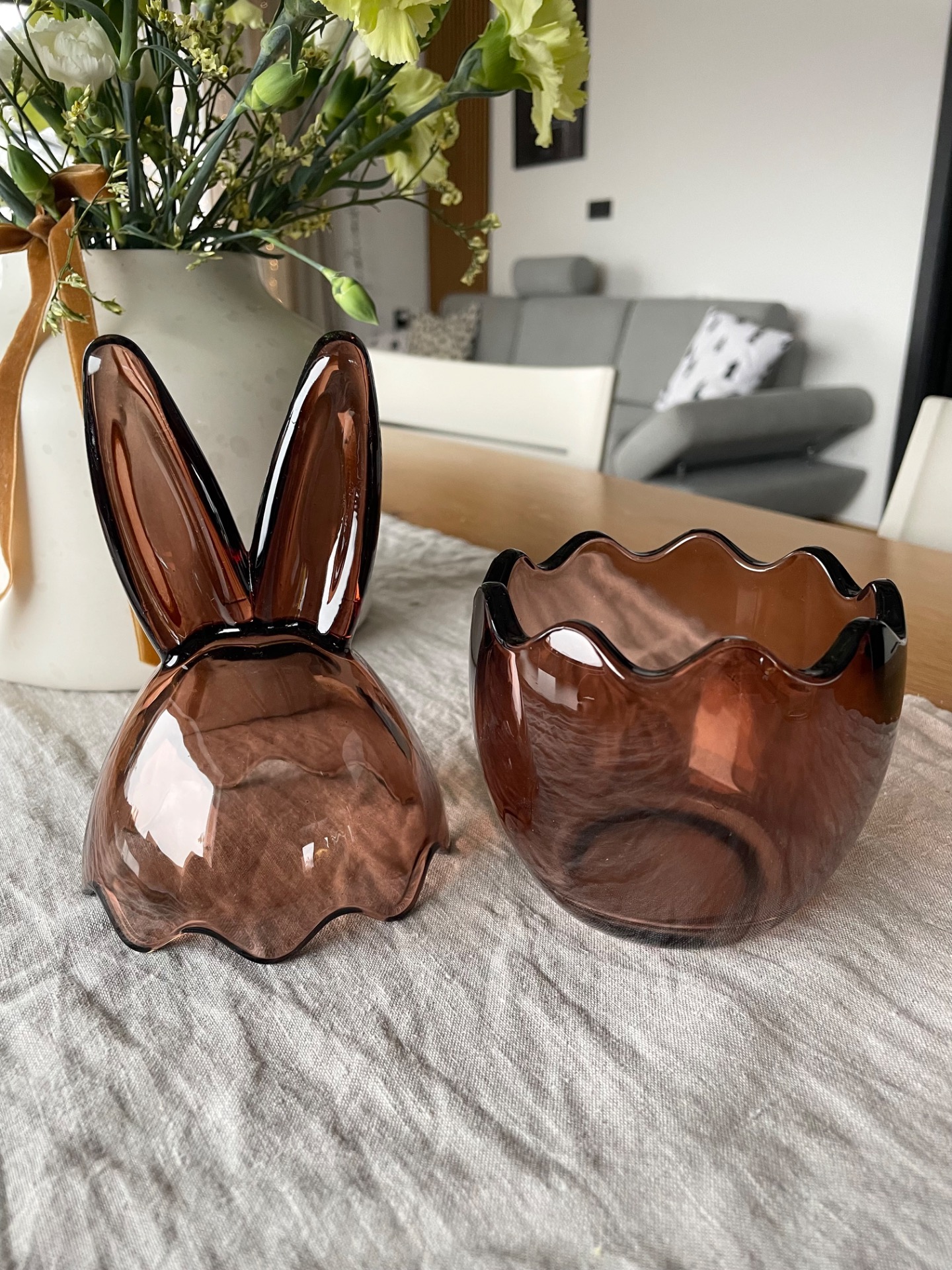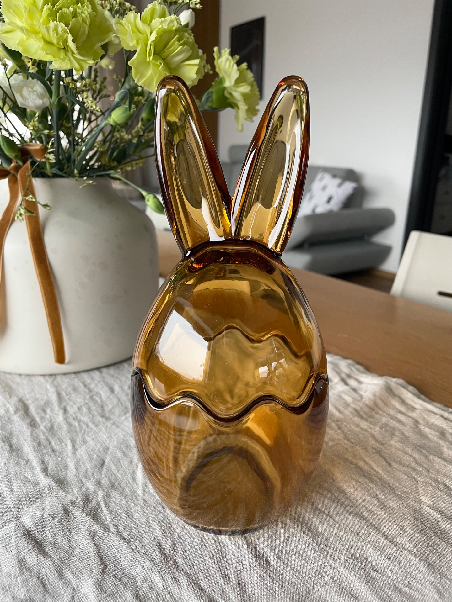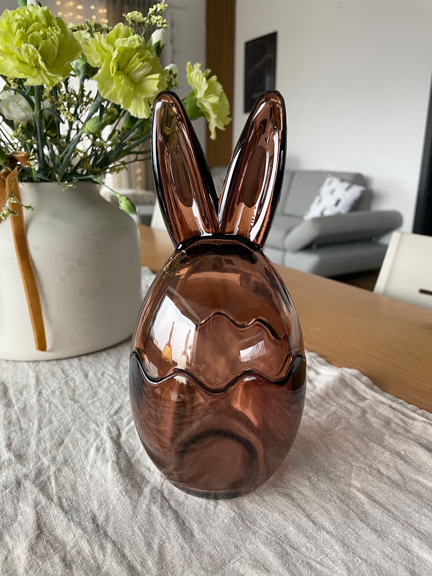 Skleněná dóza s víkem ve tvaru vejce se zaječími oušky je skvělým dárkem nejen pro domácnosti, ale také pro milovníky originálních designových prvků.