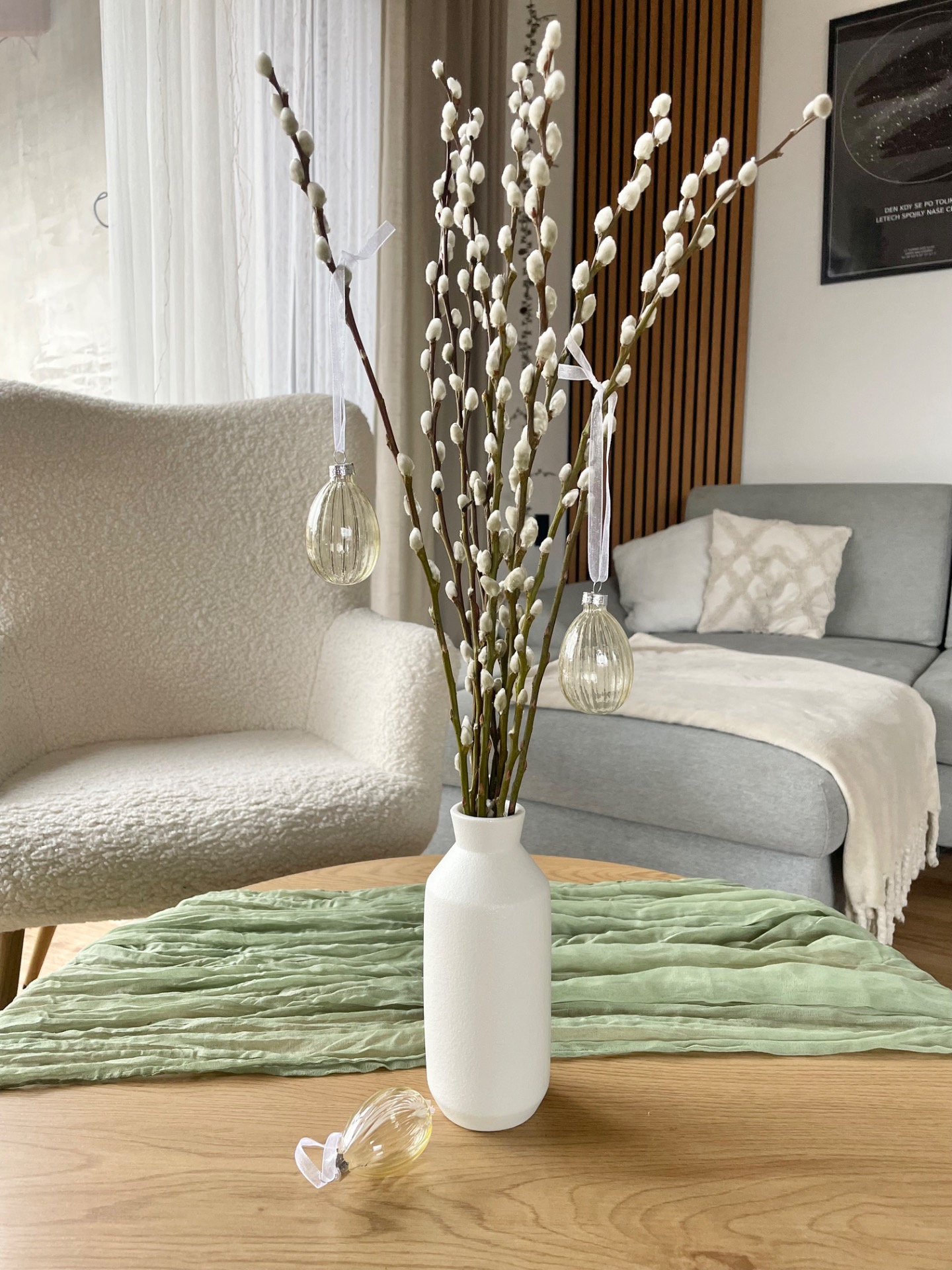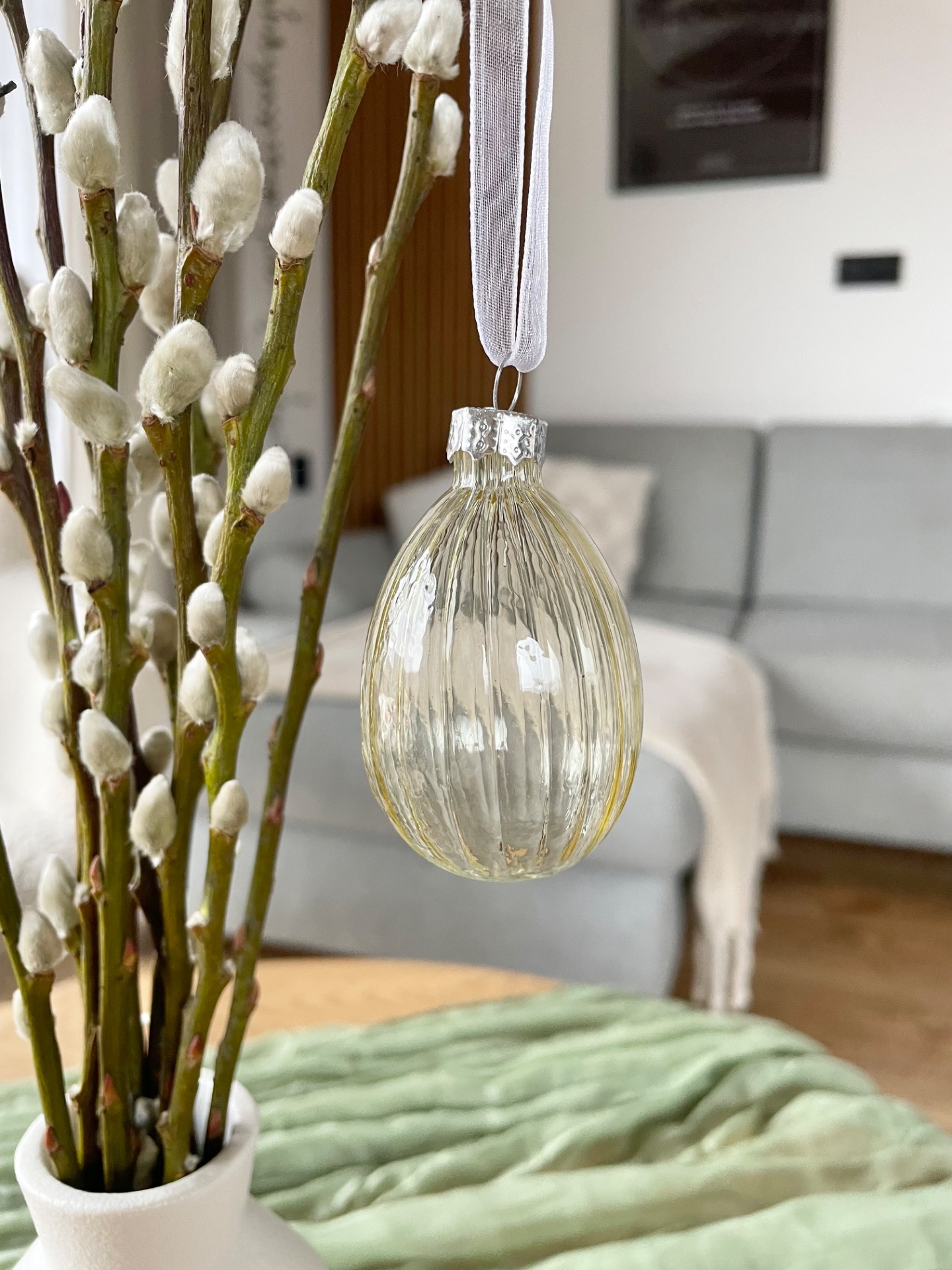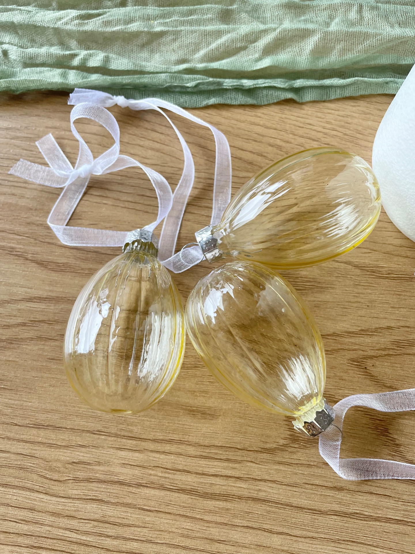Sada 3ks skleněných vajíček k zavěšení v dekoru s proužky. Vhodný k velikonočnímu dekorování k zavěšení na větvičku.