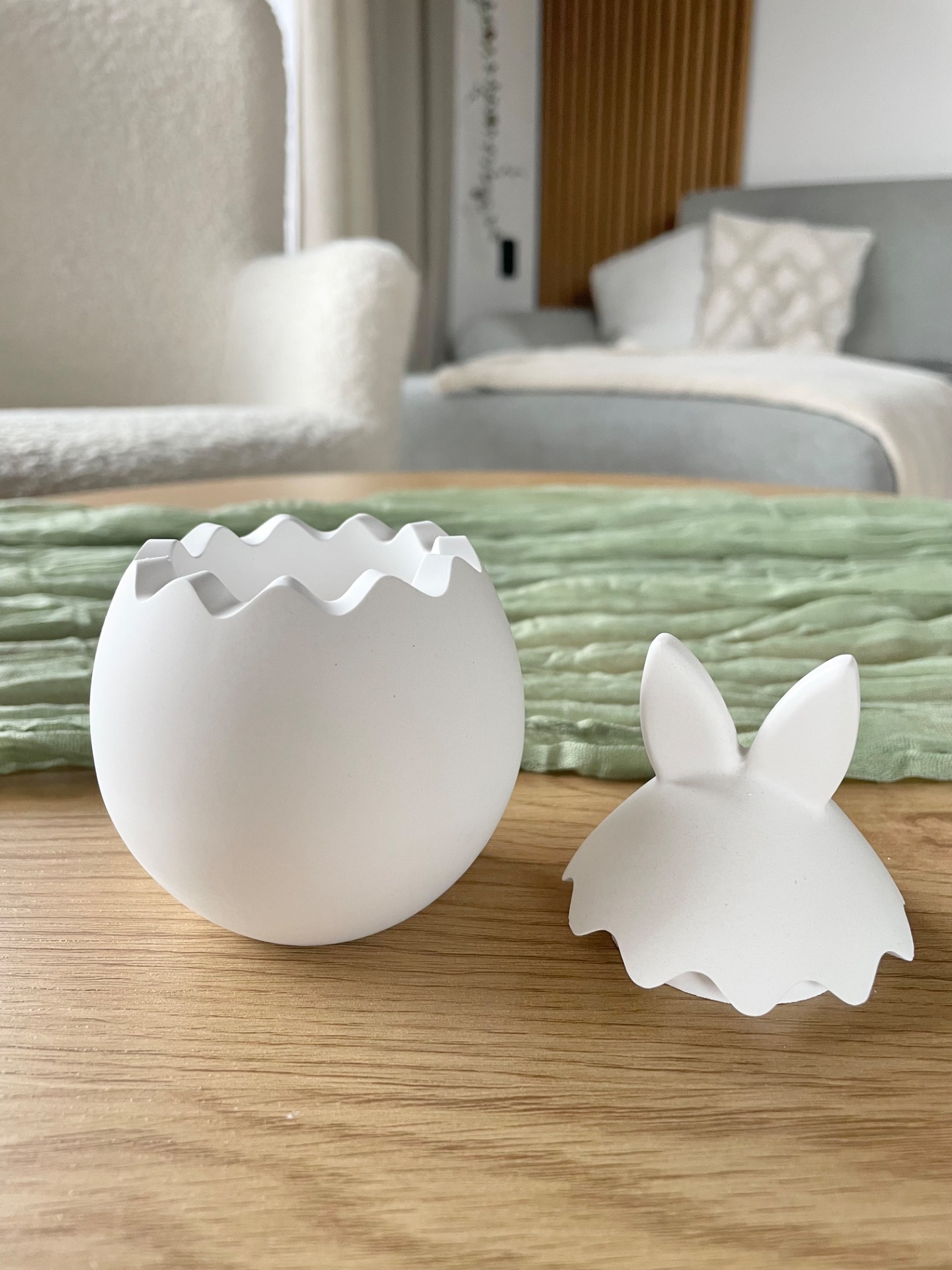 Dekorační vajíčko skořápka s oušky. Krásná jemná dekorace pro velikonoční období.