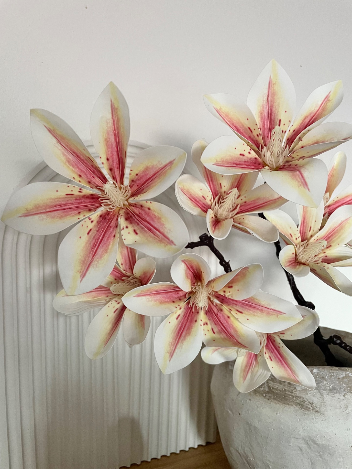 Umělá větvička s květy magnólie v oranžovo béžovém barevném provedení. Velice realistické a jemné provedení květů.