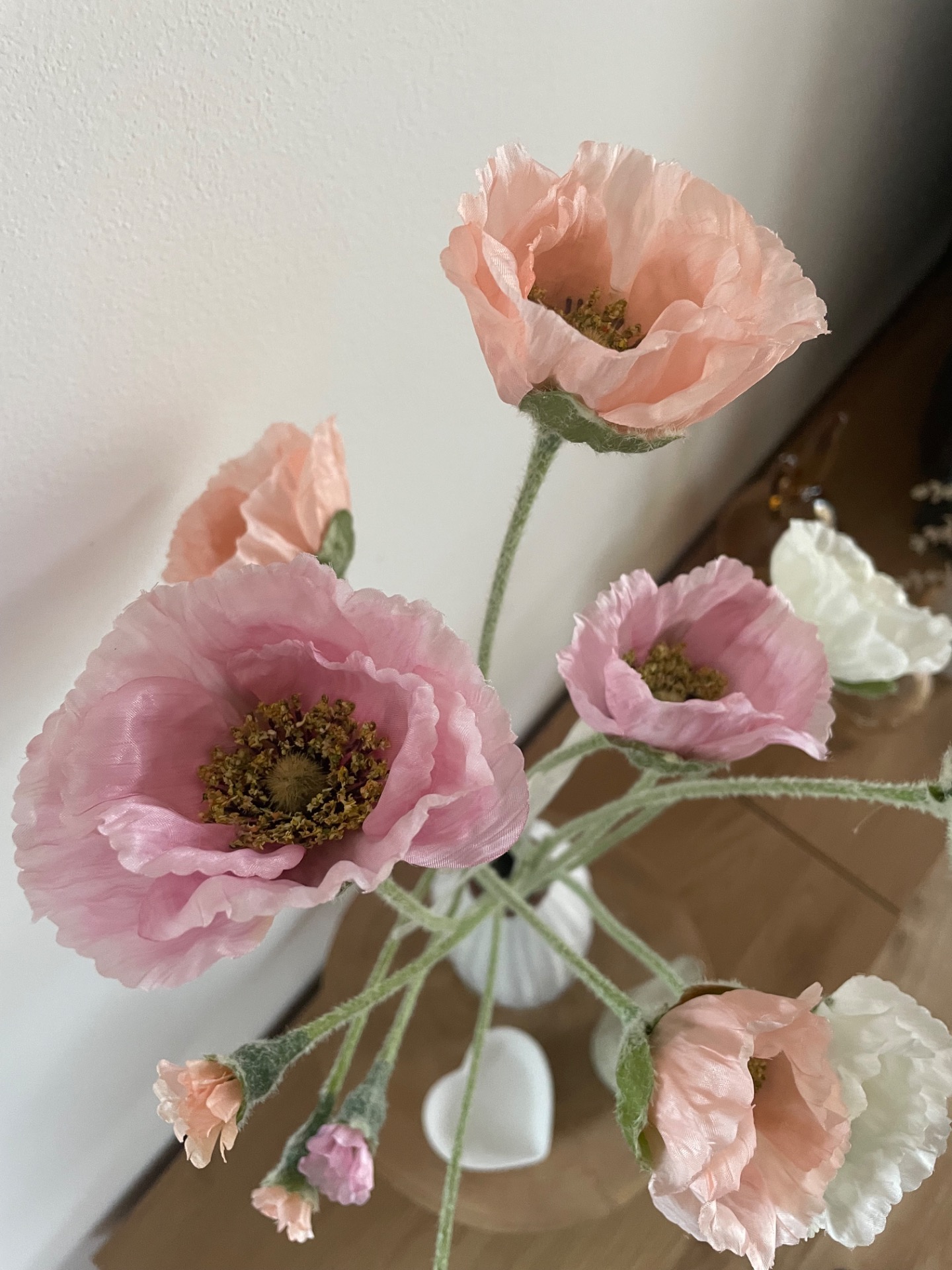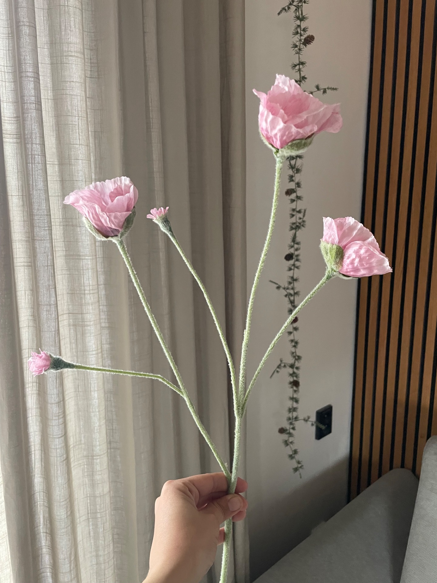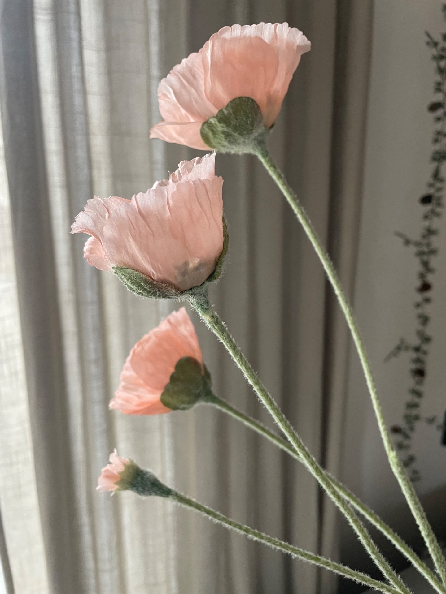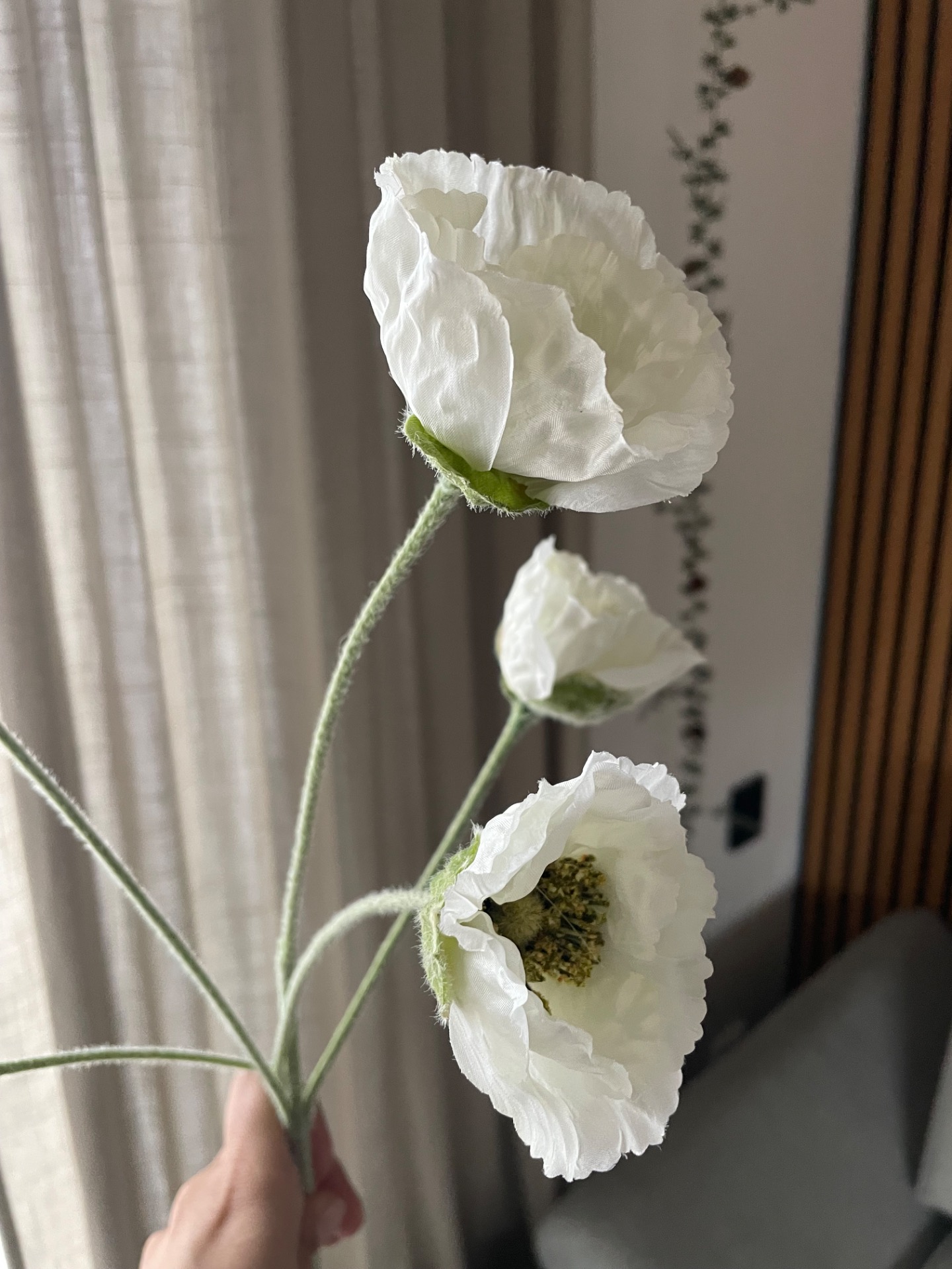 Umělá větev v designu vlčího máku v prvotřídním zpracování. Větev obsahuje 3 velké květy a 2 méně rozvinuté. Celý povrch stonku je potažen sametovým materiálem, díky kterému vypadají opravdu realisticky.