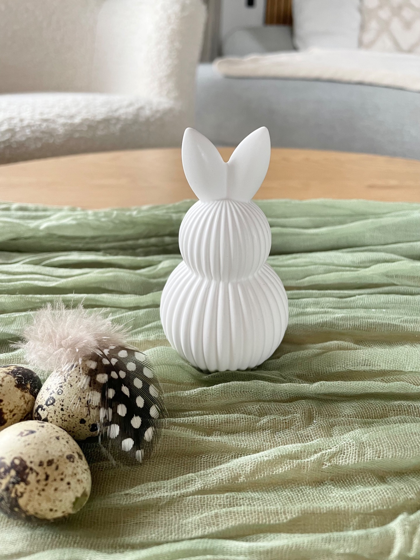 Minimalistický zajíček v dekoru s vroubky k jemné velikonoční dekoraci.