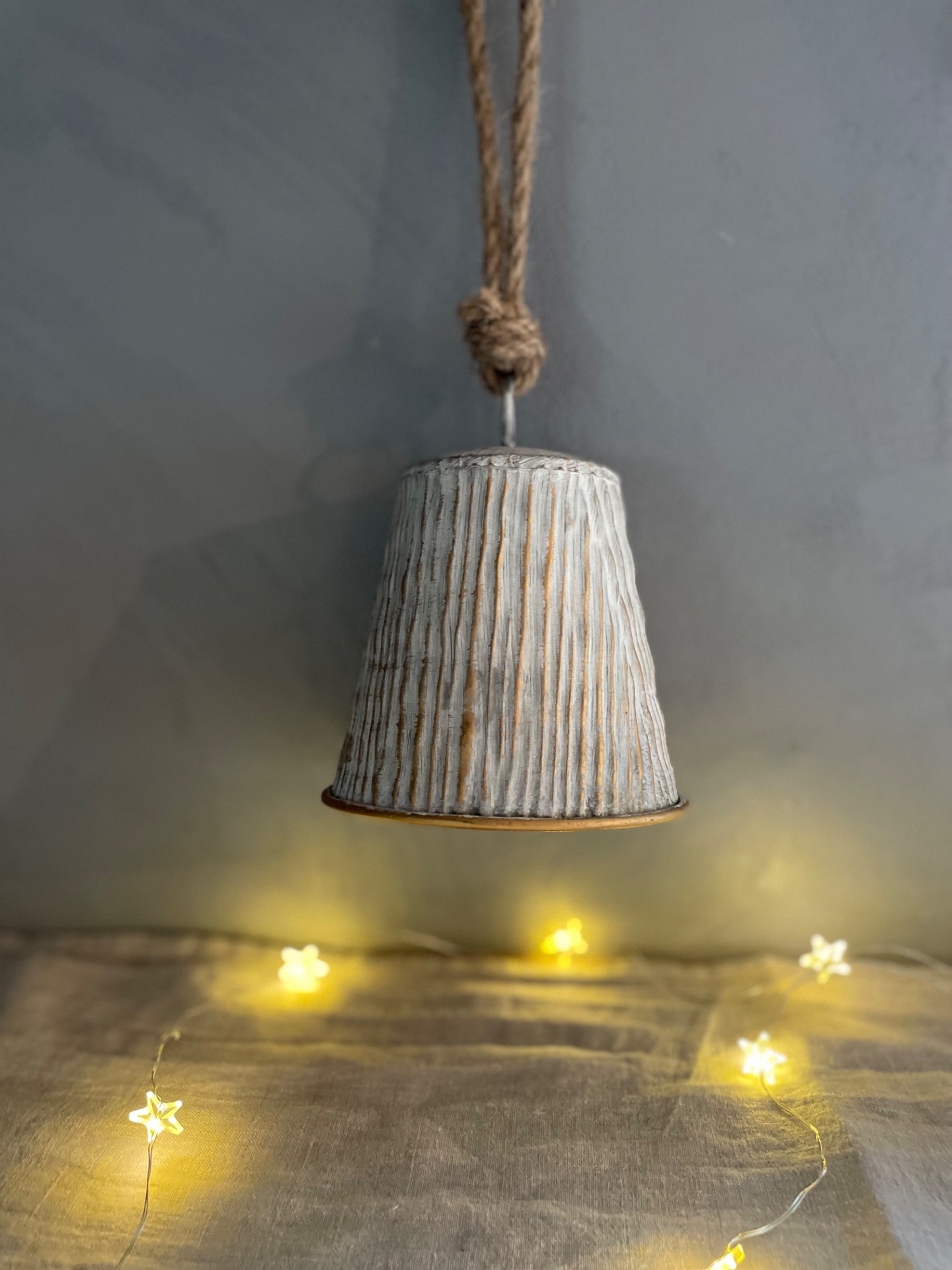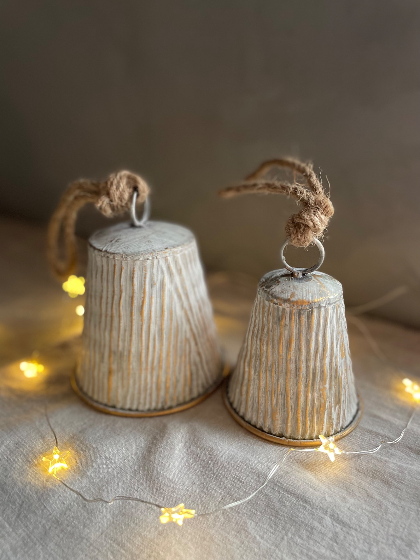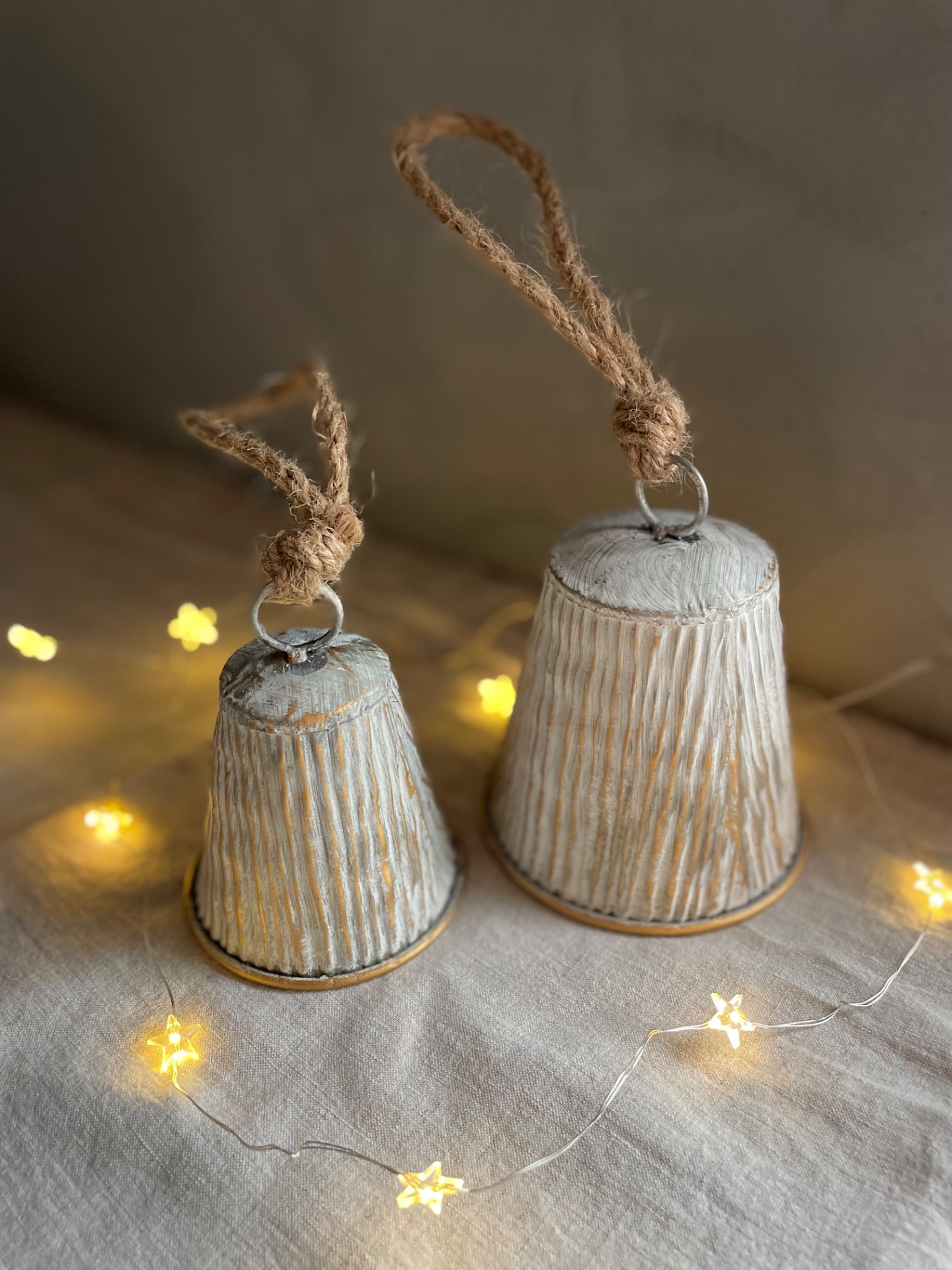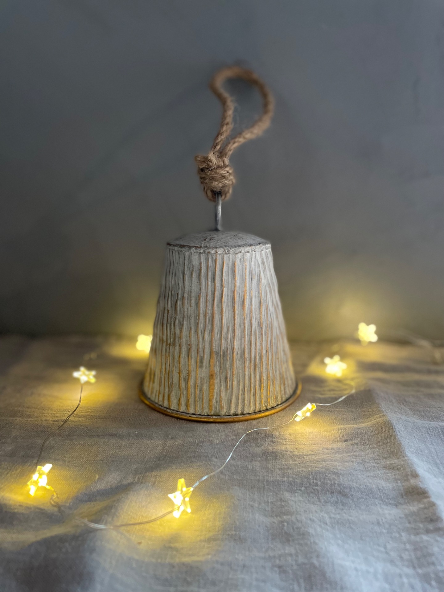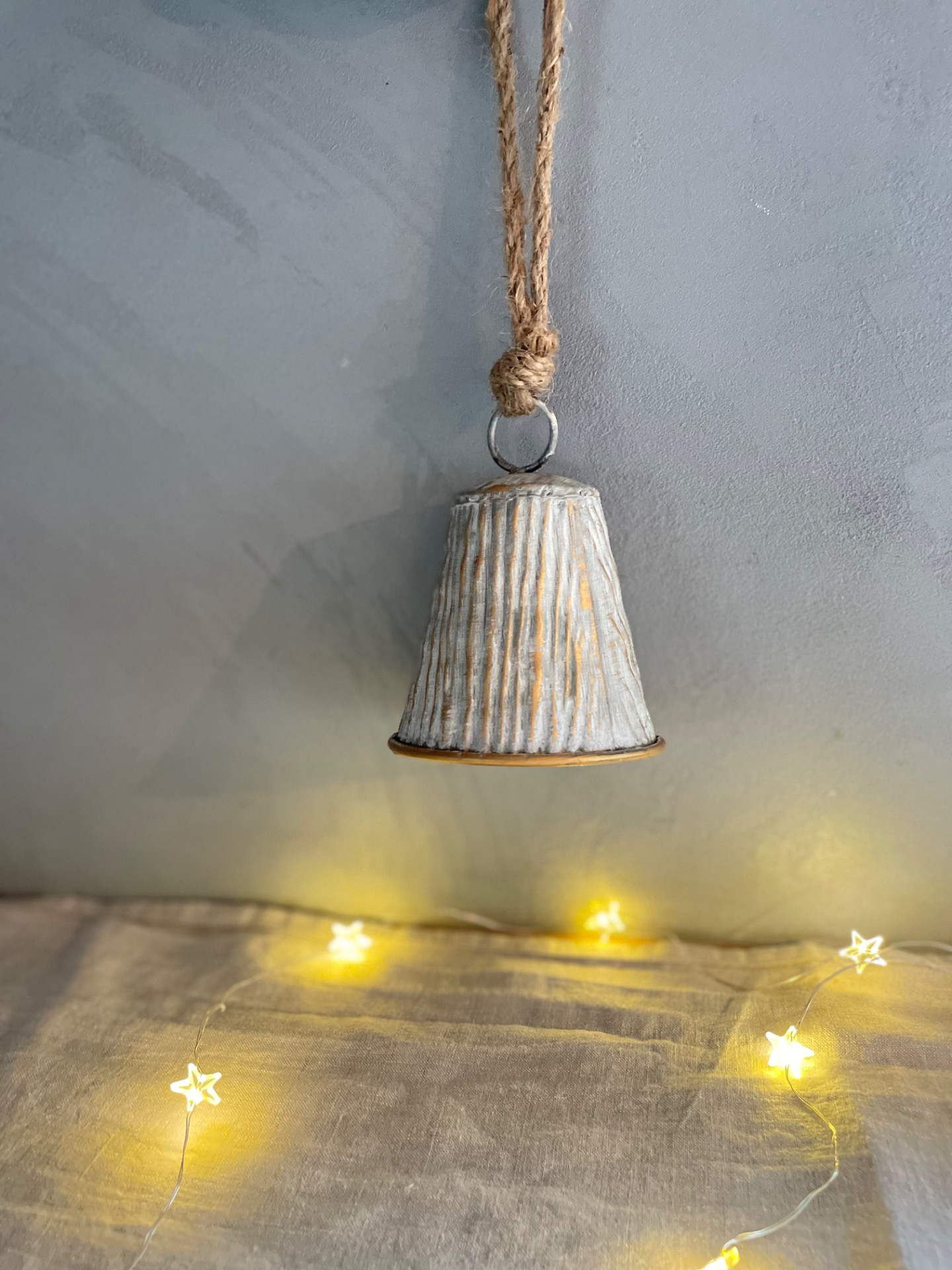 Dekorační zvoneček k zavěšení v kombinaci bílé a zlaté s vroubky. vhodný na zavěšení, postavení nebo do věnce.